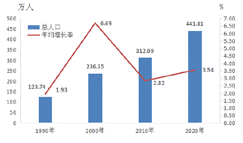 | 图1-1 历次人口普查常住人口及年均增长率 |
