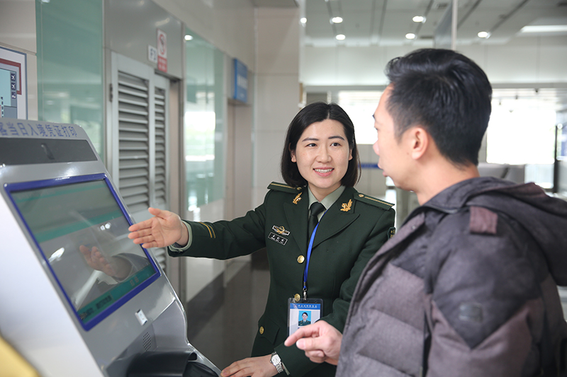 2018年2月5日,中山边检站工作人员引导旅客使用自助设备打印出入境记录凭证