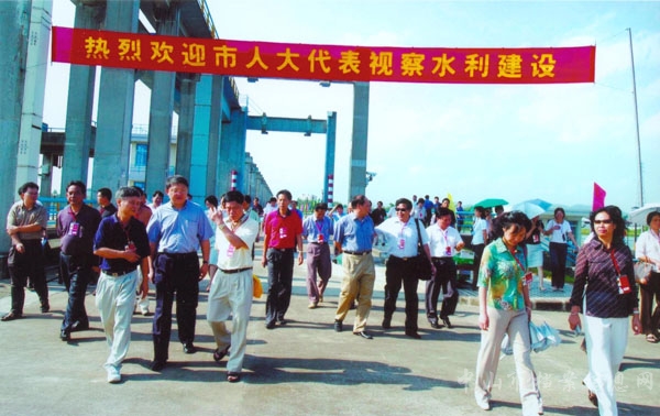 2005年9月15日,市人大代表统一活动日,视察水利工程。