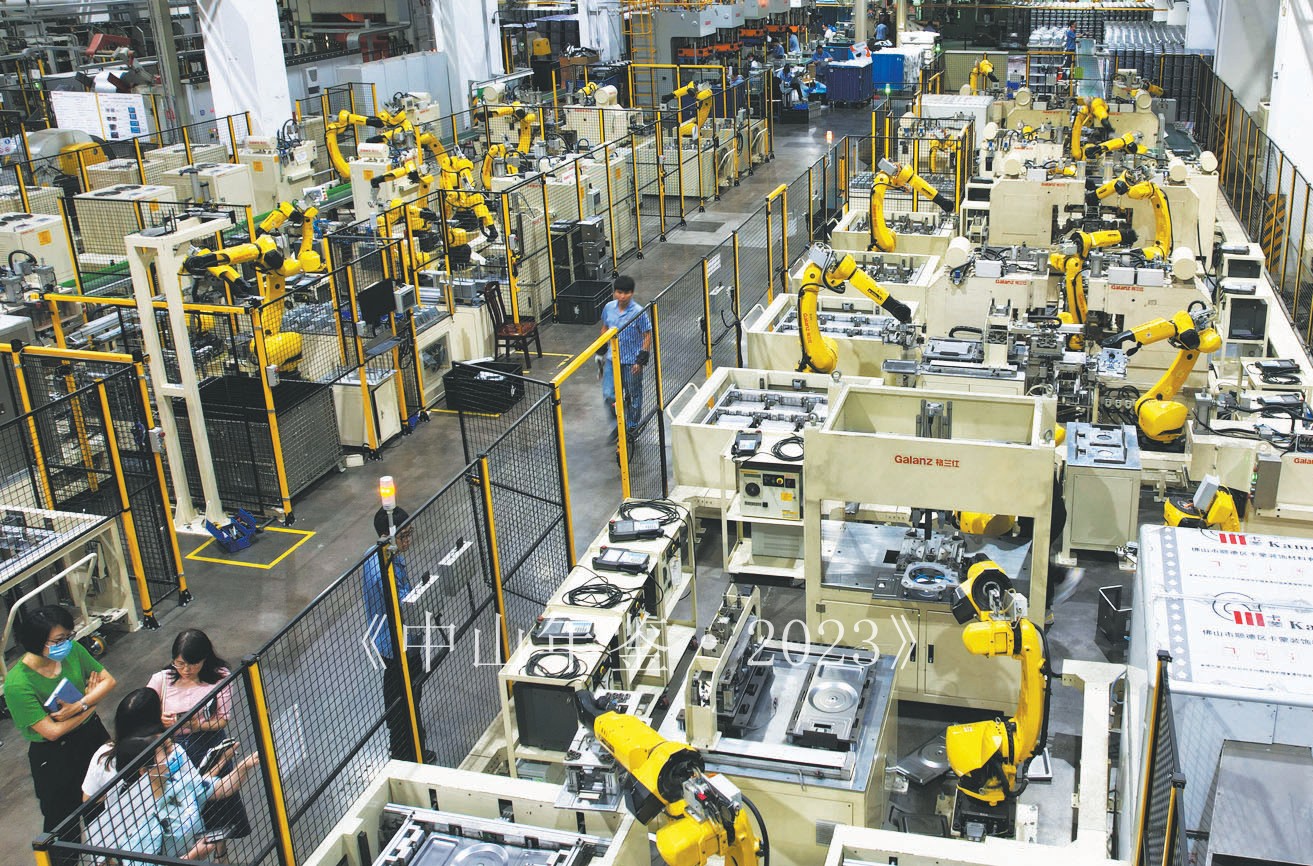 2022年12月13日,中山企业广东格兰仕微波生活电器制造有限公司入选2022年工业和信息化部新认定的第七批国家级“制造业单项冠军示范企业”。图为格兰仕工业4.0生产线