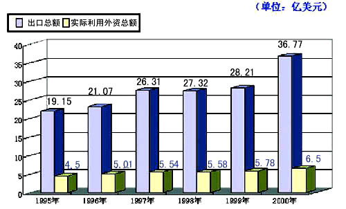 中山市“九五”时期外贸出口总额与实际利用外资总额