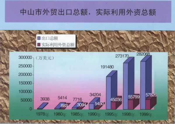 中山市外贸出口总额,实际利用外资总额(1978-1999年)