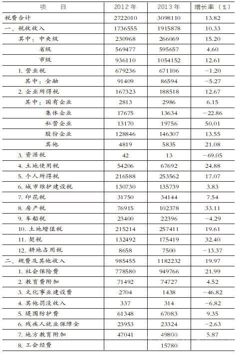 2012—2013年中山市地方税务局税费收入表