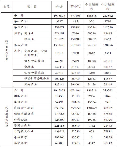 2013年中山市地方税务局各产业、企业类型税收表